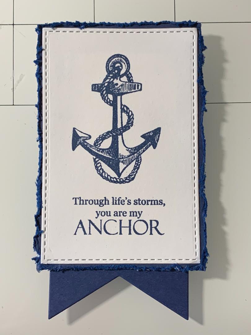 Today's card project is featuring Gina K. Designs My Anchor stamp set. This is a monochromatic card using In The Navy ink and cardstock. This could be used as a masculine card, or a card to let someone know how much you appreciate their support in your life. Gina K. Designs has a new release coming out tonight at 7:00 pm central time. I encourage you to check it out as Gina always puts together an outstanding kit that is priced much lower than actual retail pricing. She also has stand alone stamp sets and products in her new releases. Let's get started on today's project!!