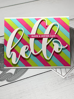Today's card is a simple, colorful card to brighten anyone's day! I will be using a color block stripes die from Pinkfresh Studio to create a colorful background as well as a huge, bold greeting die from Altenew. The color block stripes die can be used with white cardstock to create a clean background and can give a wood, plank like look to a background which is great for beach or nautical themes. The stripes can be ink blended (which I've done in a previous post), cut out of glitter cardstock, patterned paper or solid, plain cardstock like I will use today. Another great look would be to use a large frame die to cut out of the diagonal stripes... so many possibilities! Let's get started!!